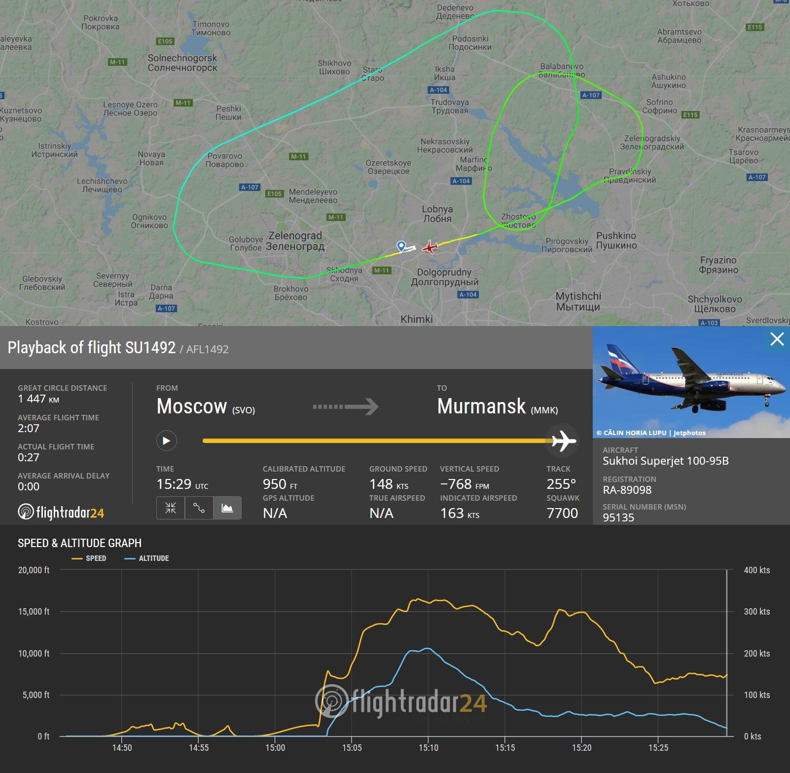1. เที่ยวบินที่ SU 1492 ทำการบินโดยเครื่องบินแบบ Sukhoi Superjet 100-95B ซึ่งเริ่มทำการบินครั้งแรกเมื่อเดือนมิถุนายนปี 2017